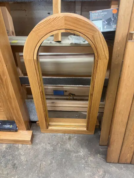 The window frame required equally meticulous attention to detail. We created clean, sharp lines that complement the door design whilst making sure the frame would accommodate modern glazing units. The smaller dimensions of the window presented unique challenges, requiring us to adapt our techniques to work within tighter tolerances.